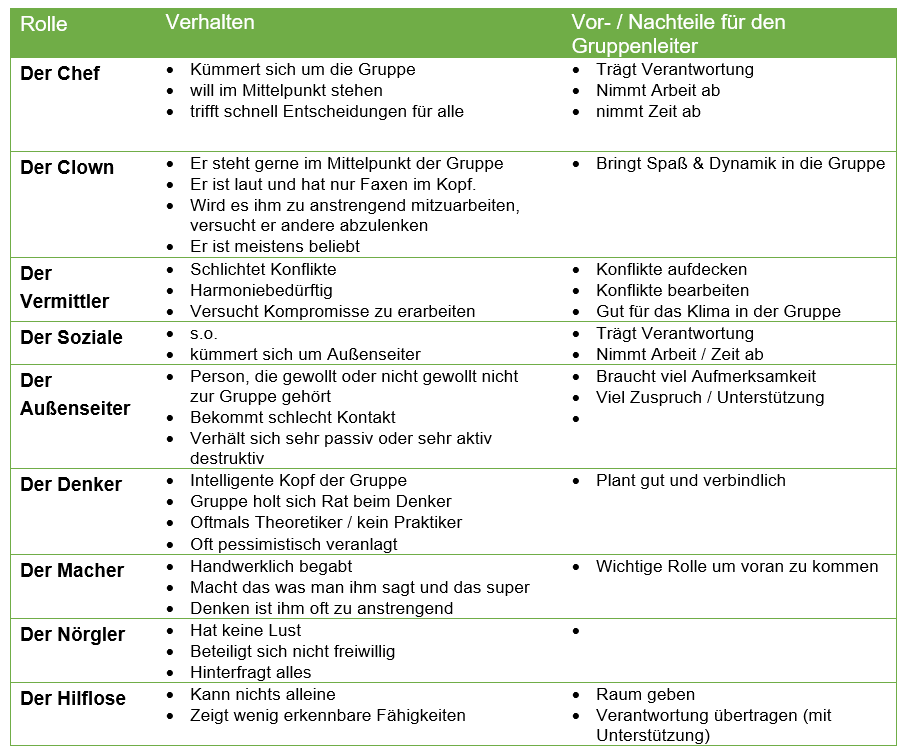 - Herausfinden, welche Rollen die einzelnen Gruppenmitglieder haben